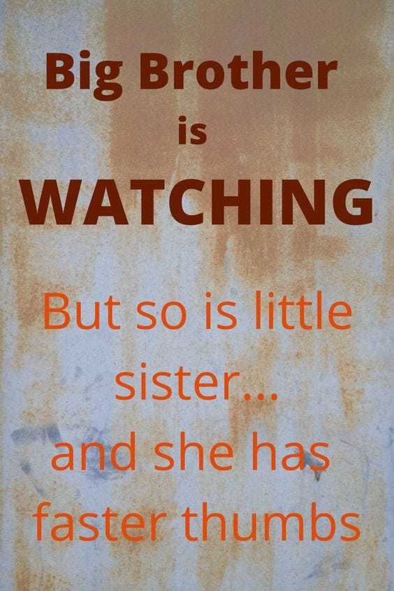 A meme I created, thinking about the current level of surveillance everywhere, juxtaposed with the fact that nearly every person has a camera in their phone. Goerge Orwell didn’t see that one coming. #steveemigmemes