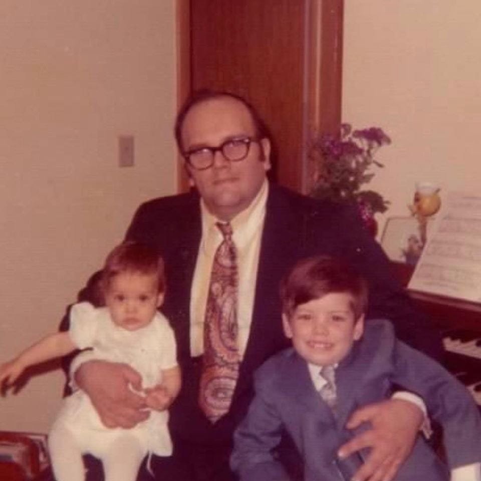 My sister Cheri, my dad, Tom Emig, and me, in Massillon, Ohio, in late 1972 or early 1973. Look at my dad’s tie. Wow. That’s some 1970’s style for you. Photo by Kathy Emig.