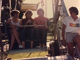 That’s me on the right, running the Ferris wheel at the The Fun Spot. My summer job in 1984 and 1985, The Fun Spot was a tiny amusement park inside of Julia Davis Park, close to the zoo, in Boise, Idaho. The summer of 1985, I turned 19, and was manager of The Fun Spot, pulling in $3.15 an hour while overseeing 6 rides, a miniature golf course, a food stand, and 12-13 employees. The pay was low, but it was a lot of responsibility and good experience. That’s three of my co-workers, Kim, Michelle, and Pam, on the ride. Photo by another co-worker, Vaughn K.